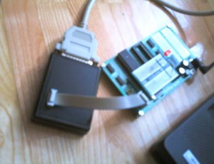 Because the programmer hardware was expensive ($59.00 USD) i decided to make one (ISP – parallel port interface) by myself as it didnt seem complicated. I suggest you use the shematic from the PonyProg website which has some improvments to other shematics found on the internet. Btw PonyProg is a software used to read/write the compiled code to/from the µController. I also bought a plastic box and packed everything inside it. Luckiely everything worked straight away :)